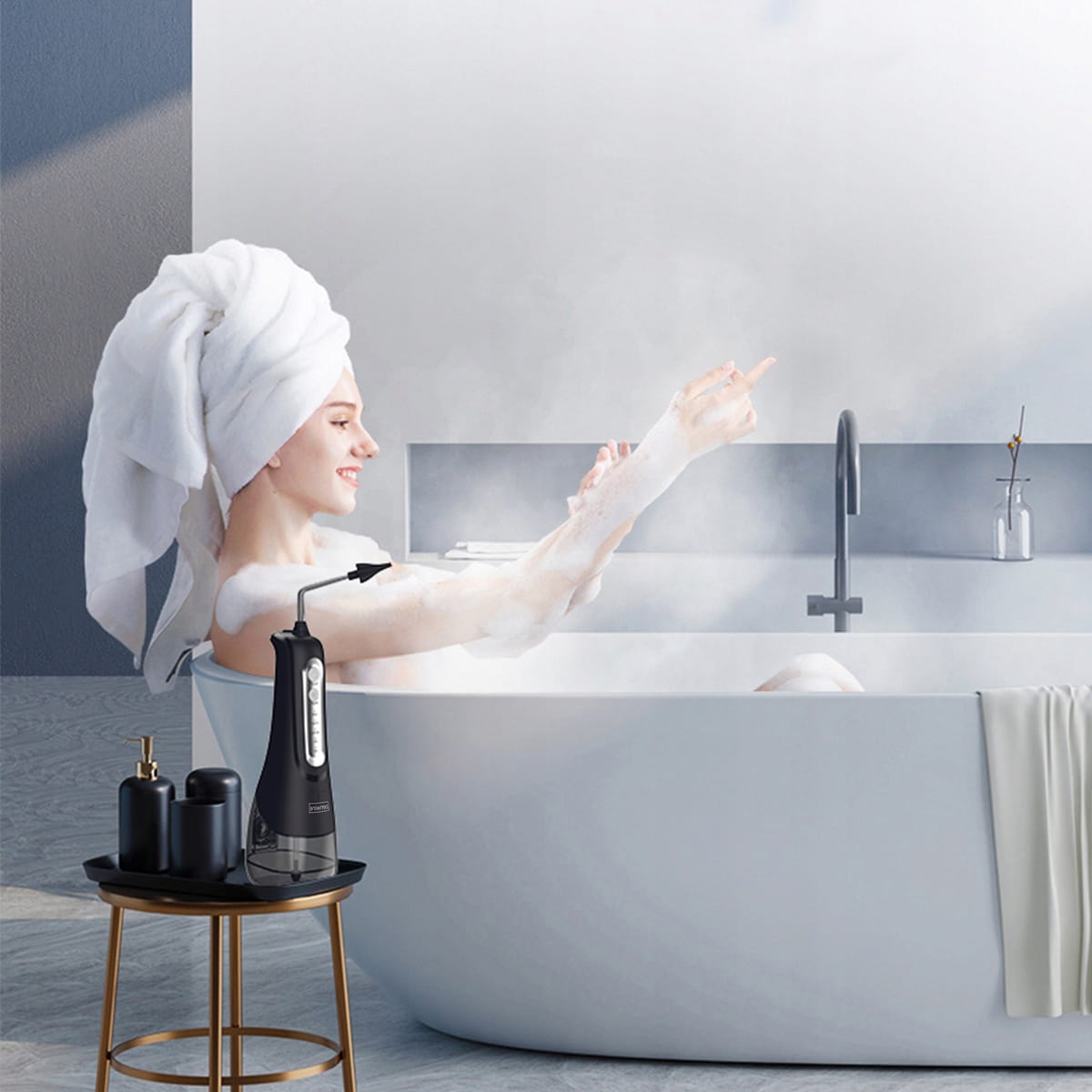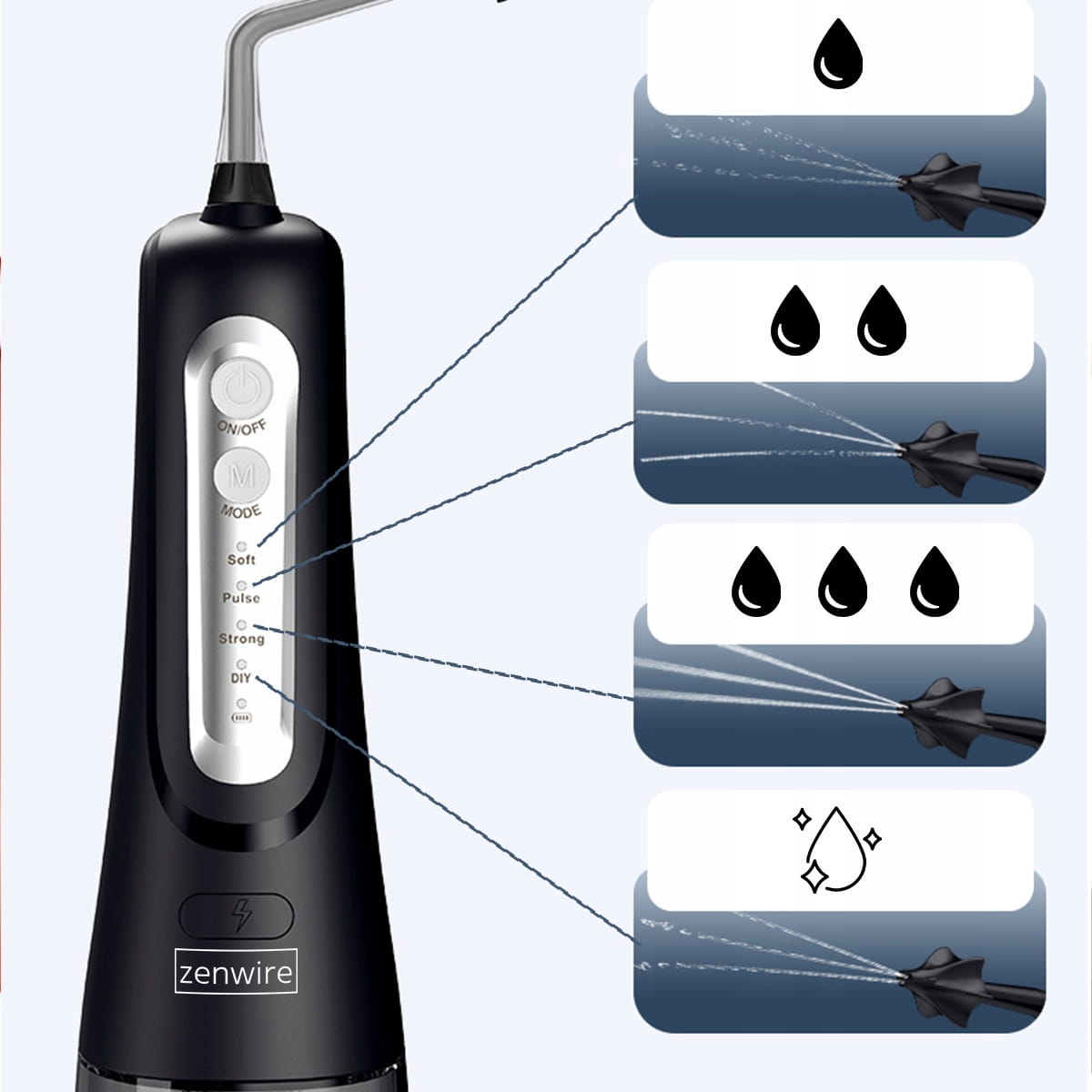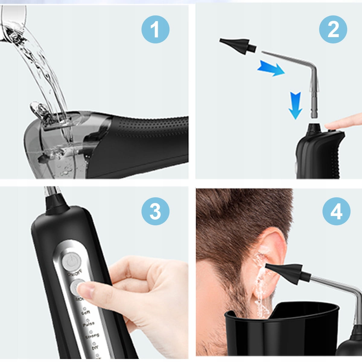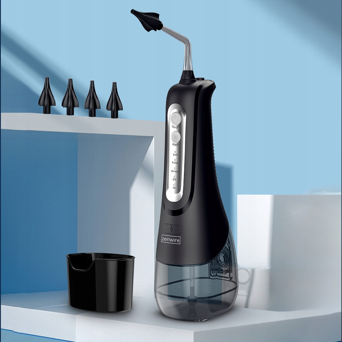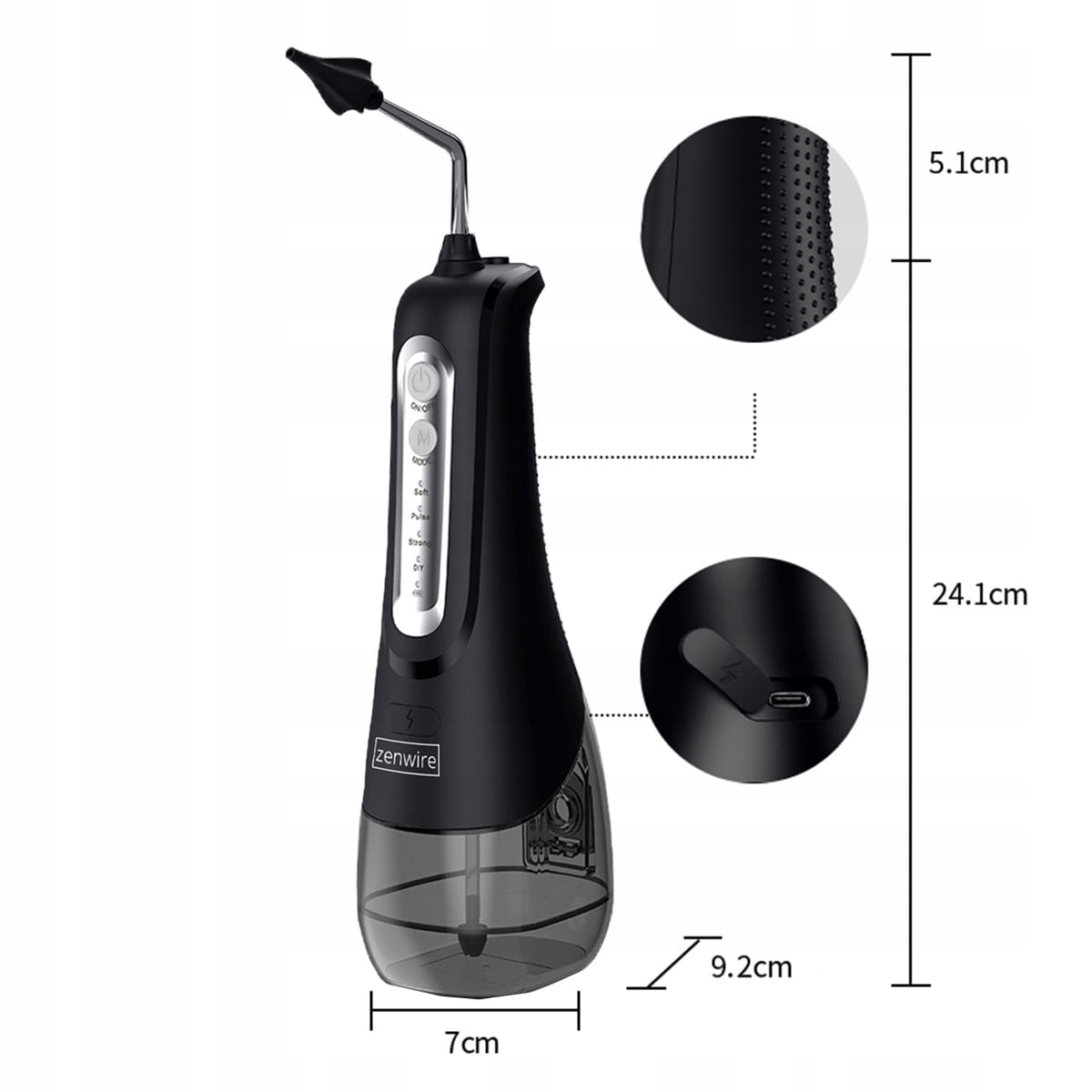 Přenosný ušní irigátor – 4 režimy / 300 ml snadné doplňování vody / IPX7 / USB-C 700 mAh + 4 nástavce + nádobka na vodu + nabíjecí kabel Zenwire MagniSonic E5