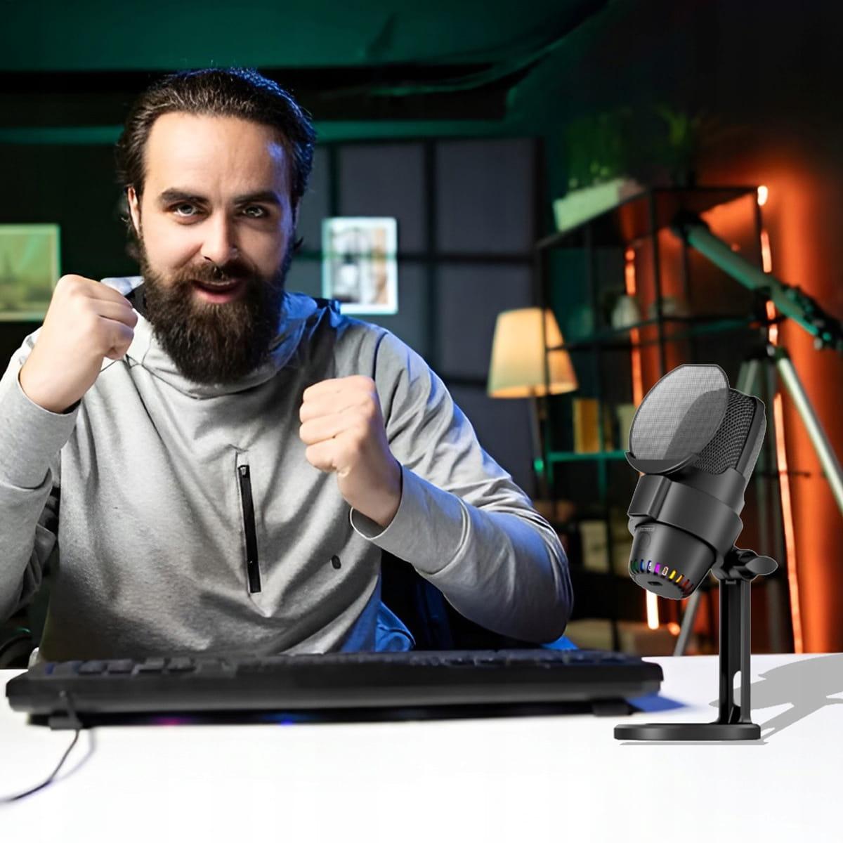 ✅ Ergonomie a pohodlí – mikrofon na stativu si můžete nastavit do správného úhlu a výšky, což zvyšuje komfort práce u stolu – zejména při streamování, online schůzkách nebo nahrávání.