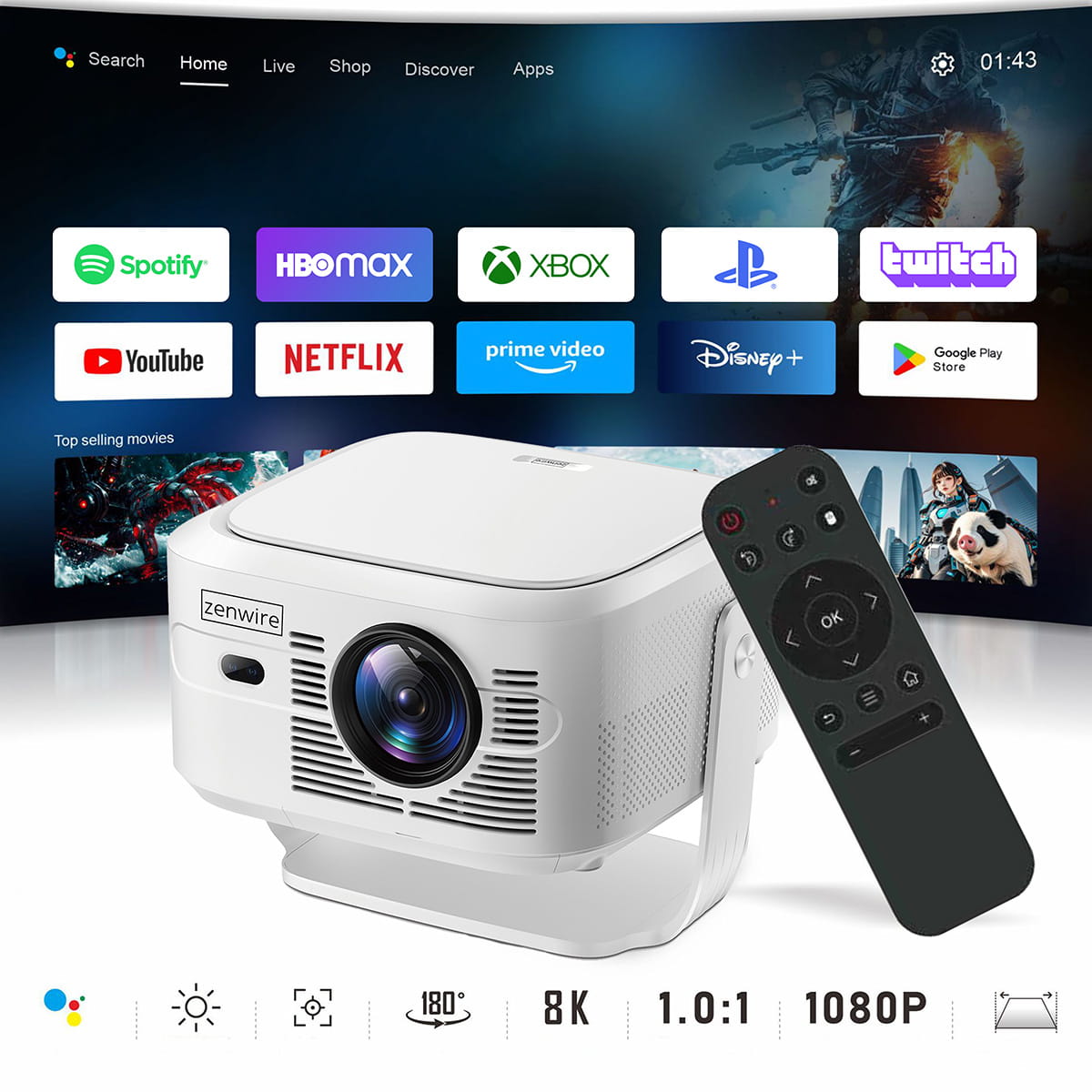 Projektor Zenwire PrimeView IMC460 Pro je vybaven ultramoderním operačním systémem Android 14 Smart TV, který umožňuje instalaci tisíců aplikací známých z chytrých televizí – jako jsou Netflix, HBO Max, Disney+, Amazon Prime Video, YouTube, Spotify a mnoho dalších.