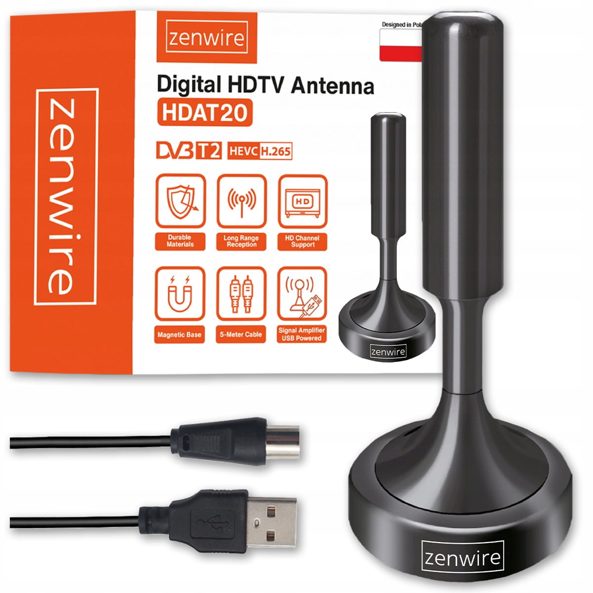 Anténa Zenwire Digital HDTV Antenna HDAT20 je intuitivní a moderní zařízení, které umožňuje příjem digitálního pozemního vysílání v novém standardu platném v Polsku a po celé Evropě. Plná kompatibilita s DVB-T2 / HEVC / H.265 s podporou i starších standardů zajišťuje stabilní příjem všech dostupných kanálů a ostrý, čistý obraz na každém televizoru.