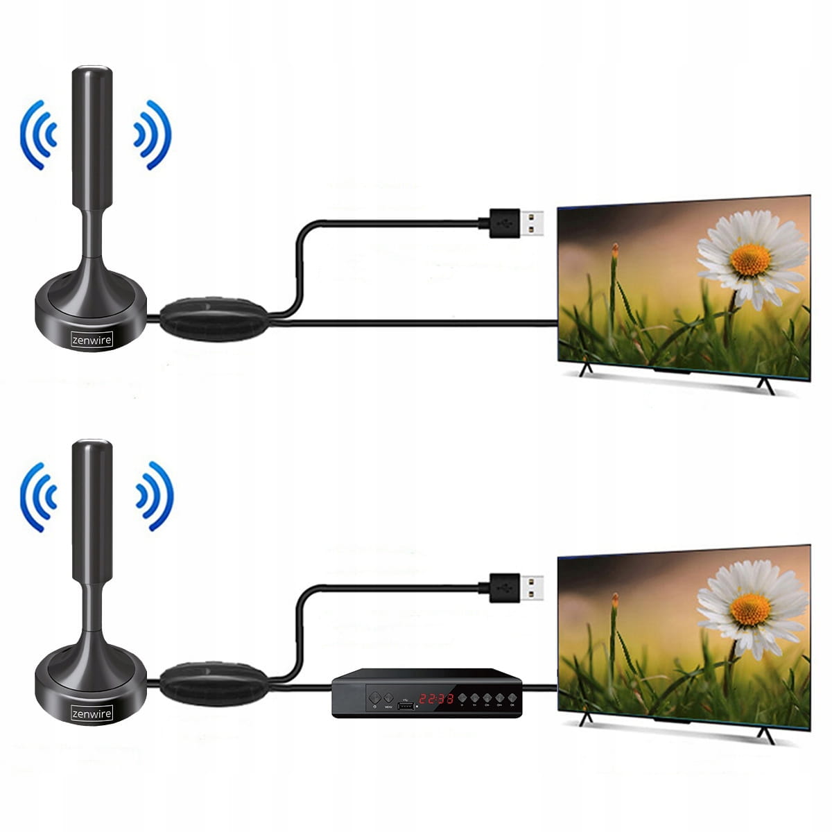 Anténa DVB-T2 H.265 HEVC se zesilovačem pro tuner a televizor, magnetická základna, napájení přes USB – Zenwire HDAT20