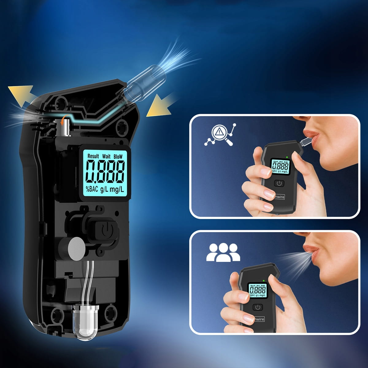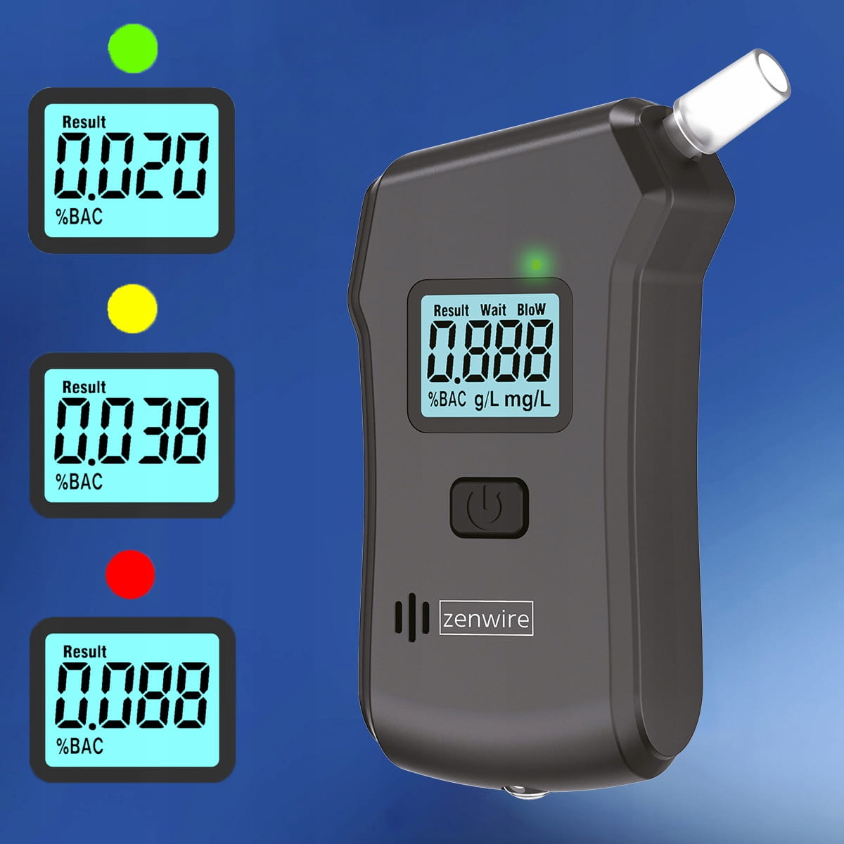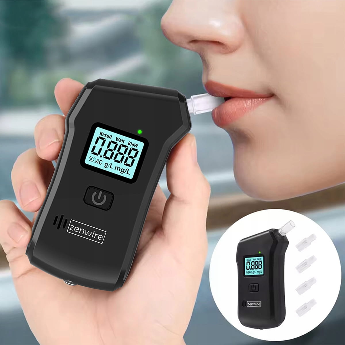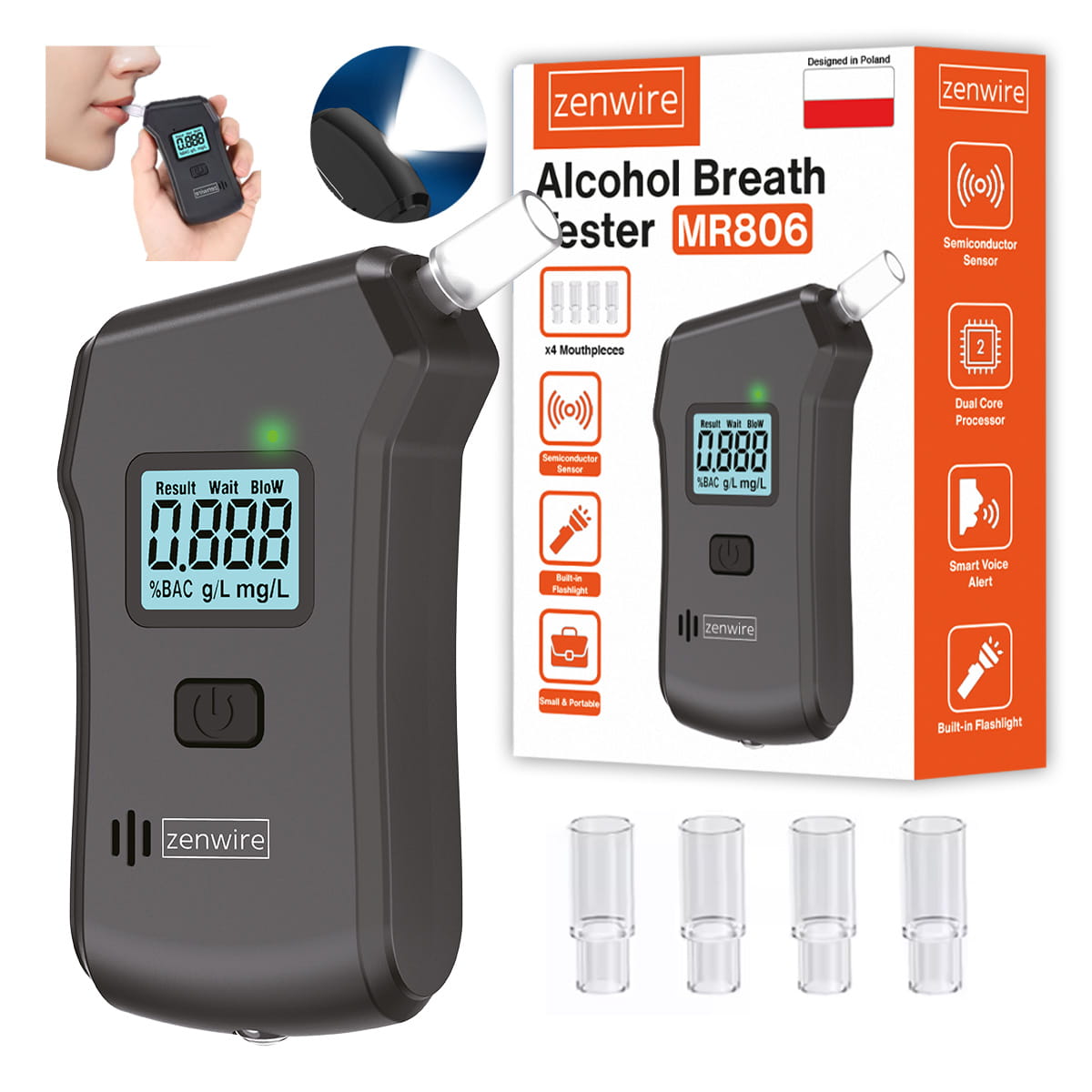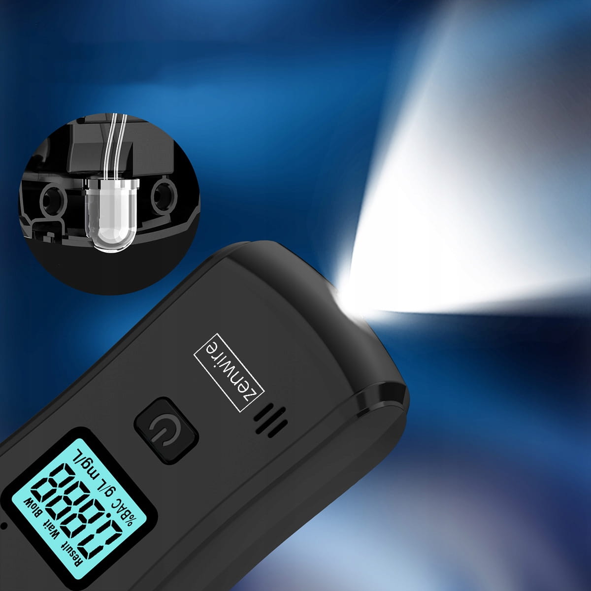 Profesionální policejní alkohol tester, digitální dechový analyzátor pro domácí použití, svítilna, 5x náustek Zenwire MR806
