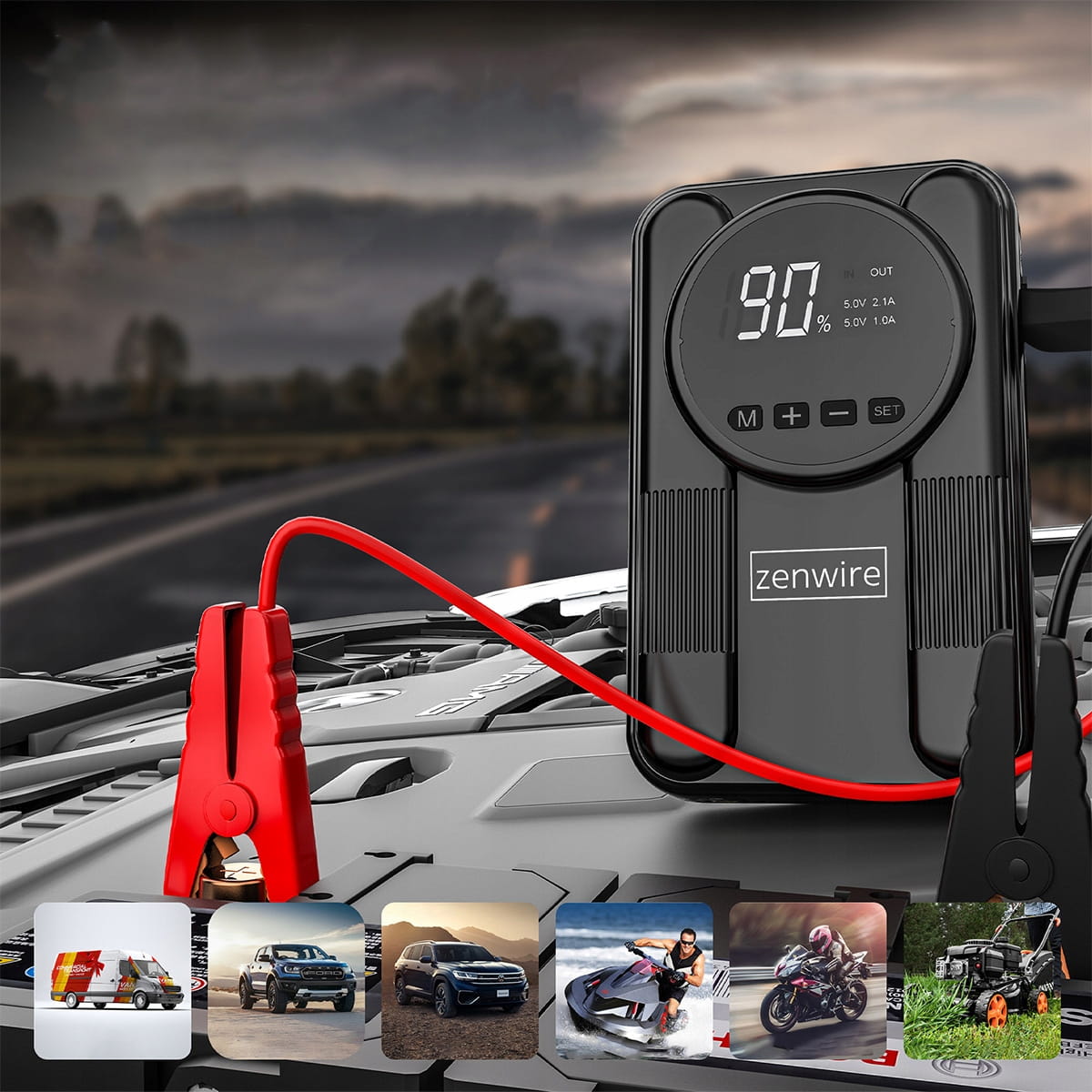 Jump starter Zenwire CYD14 byl navržen tak, aby bez problémů startoval širokou škálu vozidel vybavených 12V akumulátory.