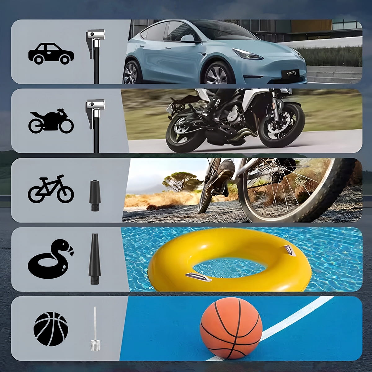 ✅ Vestavěný kompresor 150 PSI – rychlé obnovení funkčnosti pneumatik a příslušenství